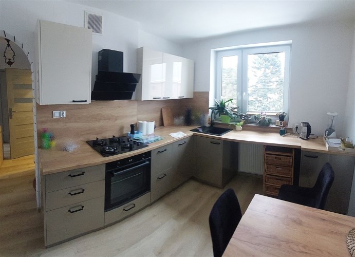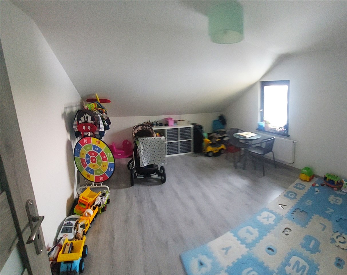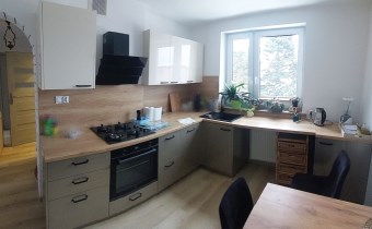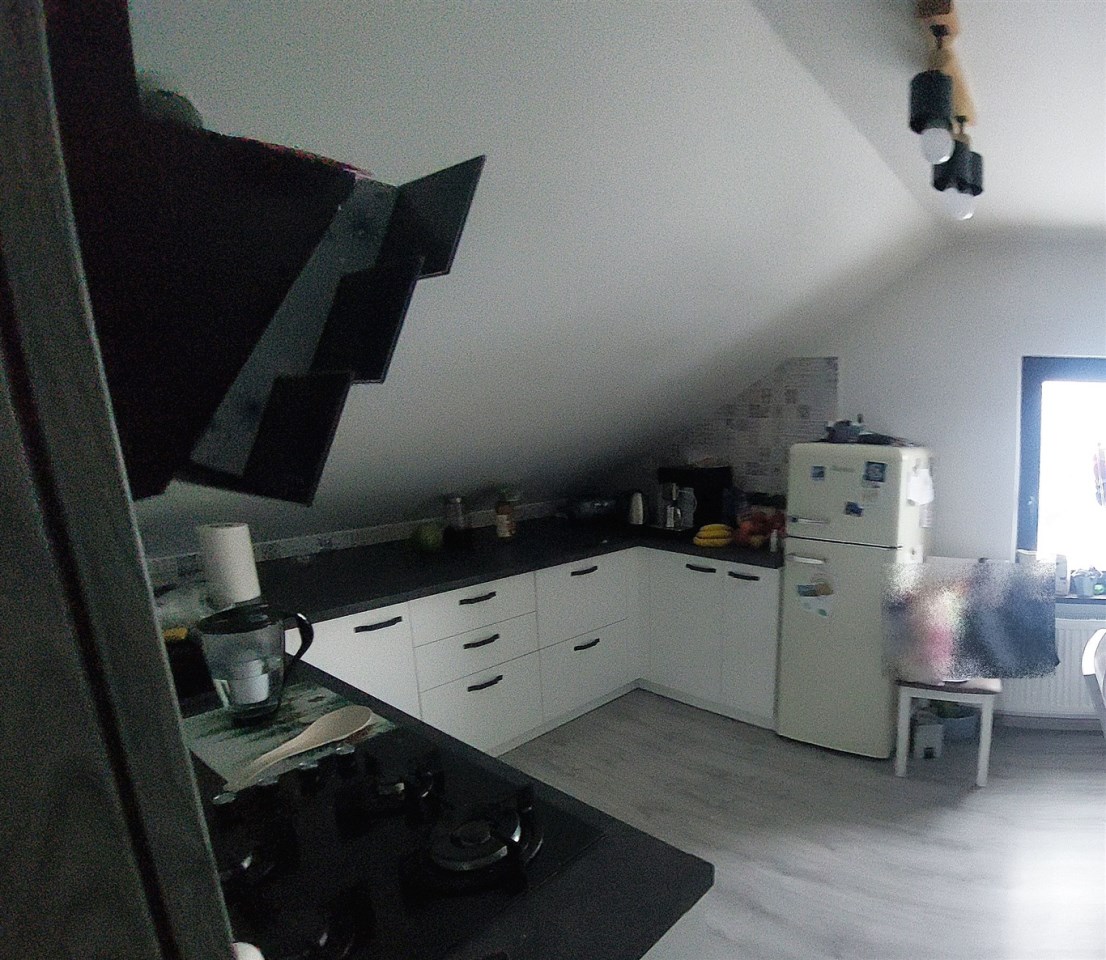 DWUKONDYGNACYJNE przytulne mieszkanie o powierzchni 120,38 m2 zlokalizowane na piętrze i na poddaszu użytkowym 4. kondygnacyjnego budynku mieszkalnego. Posiada: 4 sypialnie+salon, 2 kuchnie, 2 łazienki, pomieszczenie gospodarcze oraz wiatę garażową i pomieszczenia przynależne (piwnica).